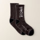Vista os homens da sua festa de casamento com meias personalizadas coordenadas. Você pode personalizar essas meias comemorativas "Tio da Noiva" com seus primeiros nomes e data de casamento em tipografia branca contra um fundo preto.