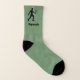Um jogador de squash ou racquet-ball, dependendo de onde você está no mundo, num divertido movimento repetitivo em meias verdes. Esta design mostra uma silhueta do campeão em ação. Se você precisar de uma sombra de fundo diferente, basta optar por usar a função de edição e escolher a cor perfeita. Você também tem a opção de alterar o texto para iniciais ou um nome curto. Nota: A imagem e o texto mostrarão no lado externo de cada meia, o lado interno será uma cor simples.