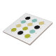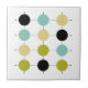 Este meio século moderno de cerâmica é brilhante e alegre... adicione um pouco de diversão ao seu projeto de martelagem com este design de médio com verde de abacate, círculos azul-aqua, preto e amarelo, em linhas de grelha pretas.
