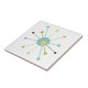 Este fabuloso azulejo decorativo moderno apresenta uma explosão de estrelas atômica nas cores azul-turquesa claro, verde-abacado, amarelo e preto. Isso fará uma adição colorida ao seu projeto de tiling!