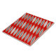 Azulejo em um design moderno do século Médio de folhas de abstrato em tons de cinza de prata clara / cinza para cinza média, acentuado com cinza de grafite e vermelho de tomate, sobre um fundo vermelho-escuro da China