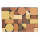 Este retrato da década de 1950 chamado padrão de arte abstrato tem quadrados, círculos e meio círculos em tons de laranja, amarelo e marrom.
