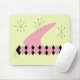 estilo Mousepad retro do 50 com teste padrão azul e cor-de-rosa e preto de Argyle, o Bumerangue cor-de-rosa, e as estrelas/átomos verdes. Deixe-nos ir para trás ao anos 50 e ao meio século modernos. Este design é muito customizável. Cada elemento é uma imagem separada. Resized mas são bastante grandes e podem ser feitos sob medida como você com, ser movidos, girado, ou removido. A cor do fundo pode ser mudada. Personalize com seu fotos, trabalhos de arte ou texto favorito.