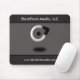 O logotipo feito sob encomenda dos meios pretos do passarinho em um mousepad