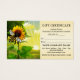 Certificado de presente de tamanho cartão de visita com ilustração artística com girassol e abelha de mel numa nova paisagem verde.