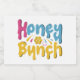 Esta design de camiseta soletra doçura com "Mel Bunch" gotejando em charme multicolor. Cada letra é enfeitada com pingos e pingos divertidos, parecendo-se com mel. A paleta colorida é uma explosão de sol, apresentando matizes brilhantes e alegres como amarelo-sol, rosa-borbulha e azul-céu. É uma escolha perfeita para quem quer espalhar um toque de doçura e celebrar as pessoas especiais em suas vidas.
