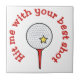 Bola de golfe com uma estrela amarela numa vara vermelha.