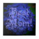 Esta "Melhor Mãe" está em texto de rico com o brilho da noite com um grupo de lindas flores azuis.
