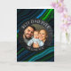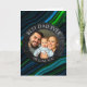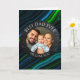 Um cartão com fotos sentimental. Um cartão de Dia de os pais para o qual você pode carregar sua foto favorita, junto com o texto, "Melhor Pai Nunca" e "nós te amamos tanto". Fundo abstrato azul e verde.