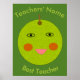 Esta poster apresenta uma maçã verde brilhante com um sorriso largo e bochechas vermelhas rosadas. Há um texto personalizável ao redor da maçã para você adicionar o nome do seu professor e uma mensagem especial para ele ou para ela.