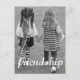 Celebre a beleza da verdadeira amizade com este cartão-postal de amizade em preto e branco comovente, apresentando dois jovens amigos caminhando de mãos dadas com a palavra amizade ao longo da imagem.