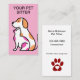 Cartão de visita de tema "Pet Sitter" bonito em uma design de cartão de chamada vertical colorida e na moda de tendências que você pode personalizar on-line com o gráfico de tendências de um cão e gato.