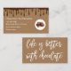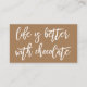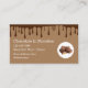 Melhores cartões de visitas para um negócio de chocolate criado com um gráfico de gotejamento de chocolate, um emblema de chocolate que você pode deixar no lugar ou substituir pelo logotipo de sua própria empresa, e chocolate humorístico dizendo no lado do sacudir para fazer seus clientes sorrirem. Criado para um designer de novidade em chocolate, site online ou loja de chocolate de tijolo e argamassa.