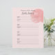 Esta página de preenchimento personalizado de 8,5 pol x 11 pol, em rosa pálido com rosa rosa-rosa-coral pálido, é personalizada e perfeita para preencher o estilo de encadernação Memorial Books ou Guest Books. Este papel de preenchimento de notebook é fácil de personalizar - expressar seu próprio sentimento, mudar o nome e excluir ou modificar datas. A página é pré-formatada para que os participantes adicionem suas informações de contato e uma mensagem ao entrar, com 4 nomes por página. Você precisará bater buracos para ajustado seu encadernador. Todos os Direitos Reservados © 2015 Alan & Marcia Socolik