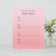 Esta página de preenchimento personalizado de 8,5" x 11", em gradiente rosa pálido (mais claro a escuro) com letra preta, é personalizada e perfeita para preencher o estilo de encadernação Memorial Books ou Guest Books. Este papel de preenchimento é fácil de personalizar - expressar seu próprio sentimento, alterar nome e excluir ou modificar datas. A página é pré-formatada para que os participantes adicionem suas informações de contato e uma mensagem ao entrar, com 4 nomes por página. Você precisará bater buracos para ajustado seu encadernador. Todos os Direitos Reservados © 2014 Alan & Marcia Socolik