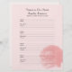 Esta página de preenchimento personalizado de 8,5" x 11", em cor-de-rosa pálido com um rosa de coral pálido, é personalizada e perfeita para preencher um estilo de aglutinador Memorial Book, Guest Book ou Funeral Register/Registry. Este papel de preenchimento de notebook é fácil de personalizar - expressar seu próprio sentimento, mudar o nome e excluir ou modificar datas. A página é pré-formatada para que os participantes adicionem suas informações de contato e uma mensagem ao entrar, com 4 nomes por página. Você precisará bater buracos para ajustado seu encadernador. Todos os Direitos Reservados © 2015 Alan & Marcia Socolik