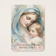 Lembre-se do seu bebê precioso em oração com este belo cartão sagrado memorial católico personalizado da Virgem Bêntea Maria segurando um bebê em seus braços com sotaques florais cor-de-rosa.