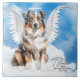Uma bela adição a uma sala, adicione uma moldura de madeira durante o check-out ou coloque o azulejo no jardim para lembrar seu querido cão pastor australiano com um cão anjo flutuando em nuvens com halo e uma doce mensagem que você personaliza com o nome do cachorro, anos com você e até mesmo parte da mensagem pode ser alterada por você.
