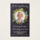 Simpatia de girassol Eucalyptus moderna Cartões de oração funerários. Este simples, mas elegante cartão de oração memorial apresenta um eucalipto verde moderno e um elegante design de girassóis. Frente "In Loving Memory" Personalize este cartão de oração do funeral memorial com a foto, o nome e as datas de seus entes queridos e o sentimento. Poema 'Miss Me', que pode ser personalizado, por favor, contacte se quiser uma design com um poema específico que não. Este cartão de oração memorável será um guardião precioso, para os serviços funerários e para a celebração da vida. COPYRIGHT © 2020 Judy Burrows, Black Dog Art - Todos Os Direitos Reservados. Memorial Sunflower Funerary Prayer Card Chalkboard