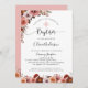 Leve o convite para o Baptism, uma menina floral cor-de-rosa-rosa, com um arranjo floral refinado no canto superior esquerdo e campo de flores na seção inferior do cartão. Flores em uma linda moda, cor-de-rosa, rosa poeirento, marfim, pêssego e tons burgundy. O cartão está de volta em cor-de-rosa pincelado com detalhes florais no fundo. Convite com seção para detalhes de "Cerimônia" e "Recepção". Coordenação de produtos disponíveis. Parte do nosso casamento e da coleção de eventos do "Céu em Rosa".