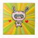 Garota coelhinha engraçada de 8 bits de arte pixel amarela azulejo inspirado pela tatuagem Irezumi, manga, pop e um toque de gosto italiano