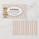 Cartão telefónico da data do jogo da menina à moda, feito em um rosa, em um branco, e em um teste padrão listrado tan. Uma área de texto oval branca, no meio, é decorada com uma borda tan e uns gráficos bonitos do país, de uma menina que guardara um filhote de cachorro. Personalize o texto para o senhor mesmo, como um cartão das mamães, ou para sua criança. Grande maneira de permanecer em contacto com outras mães e de arranjar datas do jogo, festas de aniversário, e capoeiras de assento do bebê.