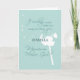 Personalize este convite de festa de casamento muito facilmente. Um dente-de-leão branco soprando ao vento em um fundo de cor aqua é uma maneira suave e bonita de pedir a um amigo ou familiar para ser sua Menina das Flores.