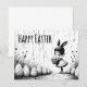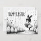 Uma ilustração elegante em preto e branco apresentando uma menina fofa com orelhas de coelho segurando uma cesta de ovos de Páscoa. A cena minimalista e ligeiramente caprichosa combina charme artístico com uma estética moderna de Páscoa.