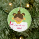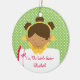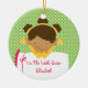 Os enfeites de natal doces personalizados da irmã mais nova da menina do afro-americano ajustaram-se em um fundo das bolinhas do verde limão. Um presente do Natal da maravilha sure a ser estimado por muitos próximos anos.