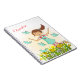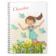 Arte gráfica bonito de uma menina de cabelo escuro na primavera que persegue pássaros em um campo dos daffodils e dos wildflowers. Personalize com seu nome das meninas, leia atualmente Claudia. Arte gráfica e design originais por Sarah Trett.