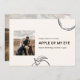 Celebre um aniversário especial com o toque personalizado do Cartão de Aniversário com Foto Personalizada Apple Of My Eye. Com um design minimalista e elegante, este cartão permite que você envie uma foto querida na frente, tornando-o um item de recordação emocionante. A doce mensagem "Feliz Dia Applelicious! Apple of My Eye - Desejos de feliz aniversário para você" adiciona um toque de calor e amor. Perfeito para expressar seu carinho por alguém querido, este cartão de alta qualidade é ideal para aniversários e ocasiões especiais.