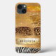 "A Impressão de Chita Dourada Girly Leopardo Zebra Girafa Cheetah com Dourado fundo brilhante e seu nome personalizado caso iPhone 13." Leopardo Espumante, Girafa, Chita e Zebra com capas de sotaque de ouro e uma pincelada de folha de ouro que enquadra seu nome personalizado. O design perfeito para uma garota selvagem!