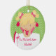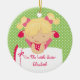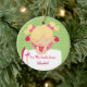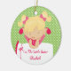 Os enfeites de natal louros doces personalizados da irmã mais nova da menina ajustaram-se em um fundo das bolinhas do verde limão. Um presente do Natal da maravilha sure a ser estimado por muitos próximos anos.