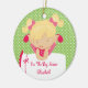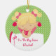 Os enfeites de natal louros doces personalizados da irmã mais velha da menina ajustaram-se em um fundo das bolinhas do verde limão. Um presente do Natal da maravilha sure a ser estimado por muitos próximos anos.