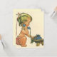 Clique no botão "personalizar" para acessar as ferramentas de design e adicionar seu próprio texto personalizado! Muitos estilos de fonte a serem escolhidos! Imagem de crianças e bebês com uma jovem loira bonitinha com rabos de pônei falando no seu primeiro telefone. Chame todos os seus amigos e diga-lhes as boas notícias!