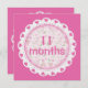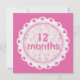 O tema "Lace cor-de-rosa" e corações é personalizado mensalmente, marcadores de marcos para o crescimento mensal documentado do bebê. Este cartão representa 11 meses na frente e 12 meses atrás. Todos os outros meses disponíveis em outros cartões de convite/anúncio nesta coleção. Utilizei um cartão de anúncio/convite por dois meses. Apenas sacudir. Cartão de compra sem envelope a ser usado para marcadores de etapa. Use seu próprio fundo pessoal de sua escolha para fotos.