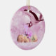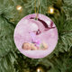 Menina, nuvens rosa e enfeites de natal de cegonha