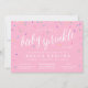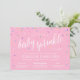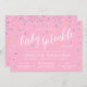 Bebê envia convites para uma menina, com um confete colorido de borrifo e um lindo fundo rosa feminino. Simples e doce ideia de convite de chá de fraldas para um chá com tema de aspersão.