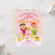 Celebre o segundo aniversário da sua filhinha com este convite geométrico e moderno, que inclui a aniversariante com a mãe e o pai a comemorar. O bolo de aniversário está pronto, o doce pudim está esperando, e os cupcakes parecem doces. O chá está quente e pronto também. As flores são bonito. Mãe e pai são os melhores padeiros do mundo! Um presente está à espera de ser aberto! O fundo deste convite de festas colorido apresenta pontos coloridos que se parecem com confete festivo e sol brilhante sorridente. É tão fácil personalizar este simples e fofo convite de festas de aniversário com seus próprios detalhes.