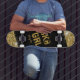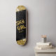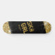 O skate personalizado brilhante preto e Dourado com o design de aspas de texto "SK8 GRL" e o nome opcional personalização apresentam um trabalho de arte impresso a negrito falso com explosões de borda reluzente, infundidas com um design desportivo, perfeito como decoração de parede, manutenção ou skate de design feminino a ser usado no parque.