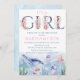 Cute É uma garota sob o convite do chá de fraldas do mar que apresenta uma baleia a cores-d'água, tartaruga marinha, água-viva, polvo, goldfish, conchas e plantas de coral.