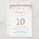 Celebre o aniversário de 10 anos com ouro colorido, cor-de-rosa, hortelã e macarrão nos convites de 10 anos! Apresentando os detalhes da festa da sua filha e um "10" em confetti. O título diz: "HOORAY, AMEN!" Listras coloridas e bonitas na parte de trás. Este design adorável é super fofo e giro.
