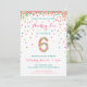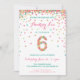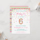 Celebre o aniversário de seu filho de 6 anos com ouro colorido, rosa, menta e macarrão-palha nesses convites de 6! Apresentando os detalhes da festa da sua filha e um "6" em confetti. O título diz: "Viva os bolos e presentes!" Listras coloridas e bonitas na parte de trás. Este design adorável é super fofo e giro.