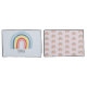 Estas capas de travesseiro de crianças modernas apresentam um lindo desenho do arco-íris, e um padrão entrelaçado. Este design branco também apresenta um lugar para você adicionar o nome da sua garota. O perfeito design colorido e moderno para seu quarto de filhos ou berçário de bebês!