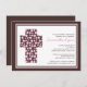 Cruz marrom contemporânea com flores cor-de-rosa com convite para batismo ou convite batizante para um batismo de menina.