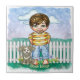 Azulejo Menino e Cachorro pela ArtMuvz Illustration. Roupas e presentes de raças de cães fofos para quem ama cães. Para personalizar, adicione seu nome ou texto. Personalize este azulejo de cachorro para torná-lo único ou para dar como presente personalizado