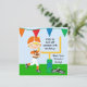 Obtenha pronto para o dia do jogo! Estes convites personalizados coloridos do aniversário do tema do futebol são grandes para os meninos que amam o futebol ou estão tendo uma celebração da festa de aniversário do futebol! Bandeiras das características, campo de futebol, futebol, calçados do futebol, e um menino em um capacete e em um jérsei alaranjados de futebol que guardaram um futebol! Fácil personalizar com específicos da festa de aniversário da sua criança!