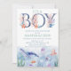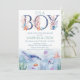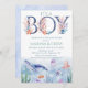 Cute É um menino sob o convite do chá de fraldas do mar que apresenta uma baleia a cores-d'água, tartaruga marinha, água-viva, polvo, peixe-dourado, conchas e plantas de coral.