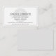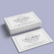Um cartão de visita com o tema mínimo de Advogado, que apresenta uma escala de símbolo de justiça em um simples cartão preto e branco de um lado. No pano de fundo está um símbolo de lei desvanecido para significar o campo dos serviços de direito.