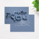 Cartões de tamanho comercial que dizem "Obrigado" em azul-prateado 3D de um lado, e no reverso você pode digitar sua própria mensagem em fundo azul.